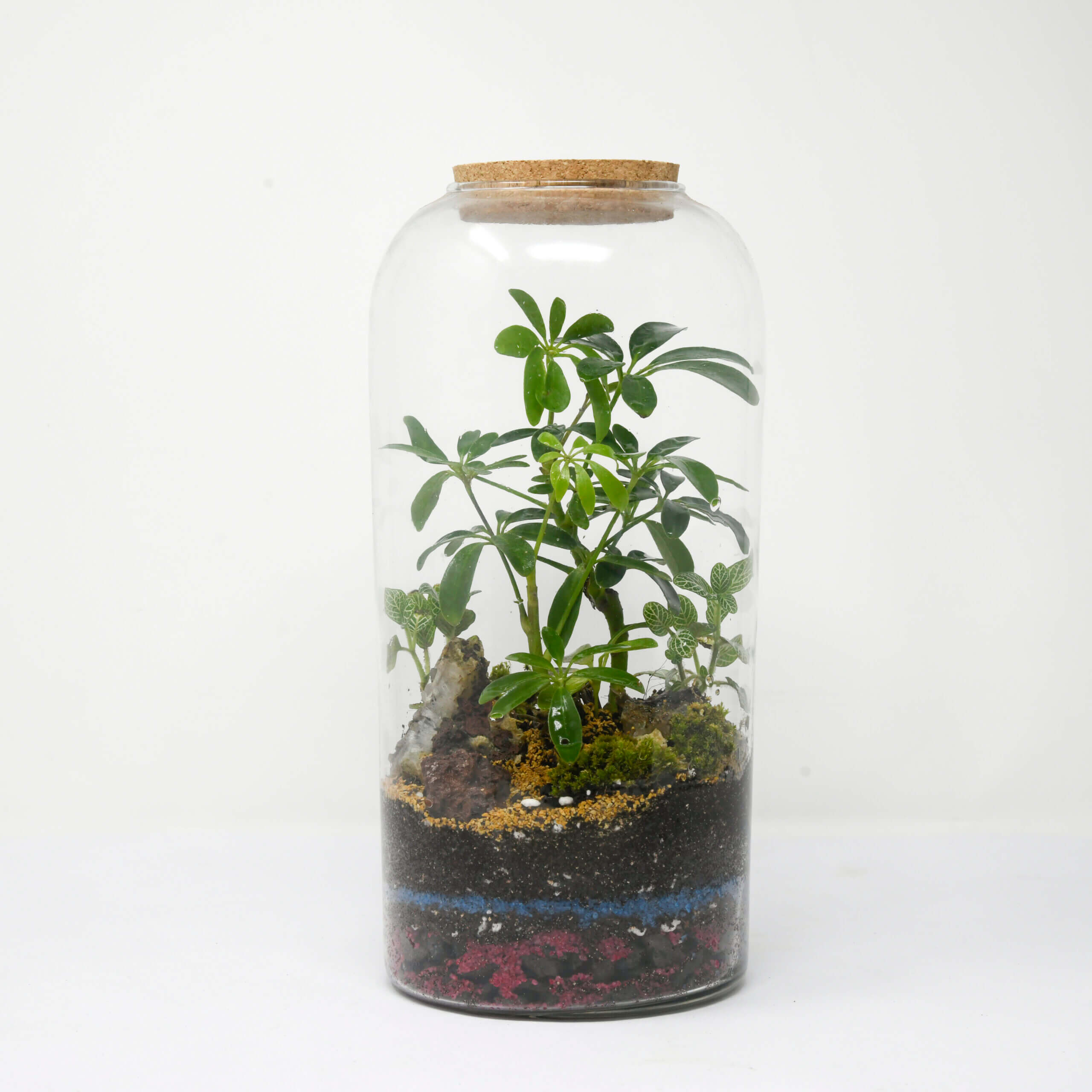 Transform your home or office with our beautifully crafted closed terrariums. Designed to thrive with just occasional watering and bright indirect sunlight, these self-sustaining ecosystems are perfect for adding a modern, elegant, and eco-friendly touch to any interior!