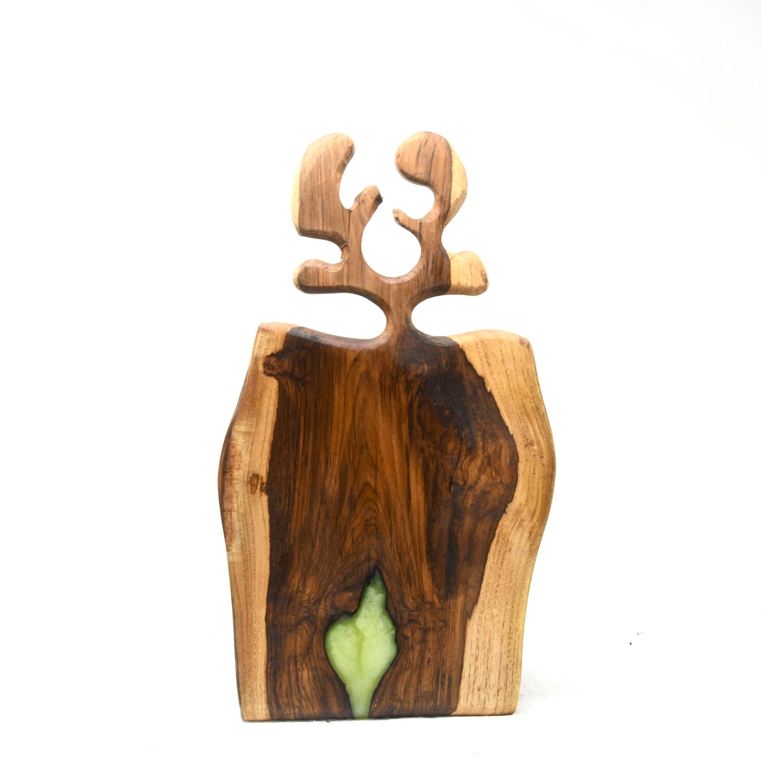 Yellow Resin Teakwood Chopping Board with Antler Handle